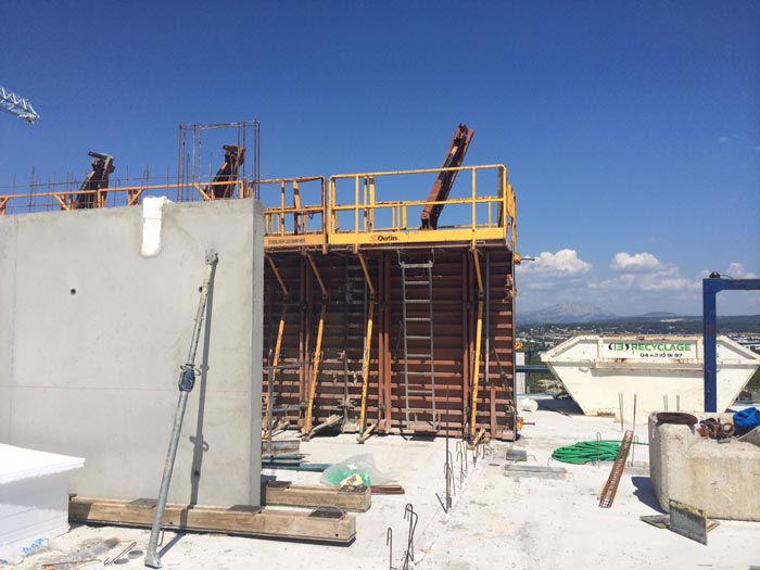 10 Juin 2014 Bâtiment C : préparation pour pose des cloisons Bâtiment C : coulage des voiles du 3ème étage