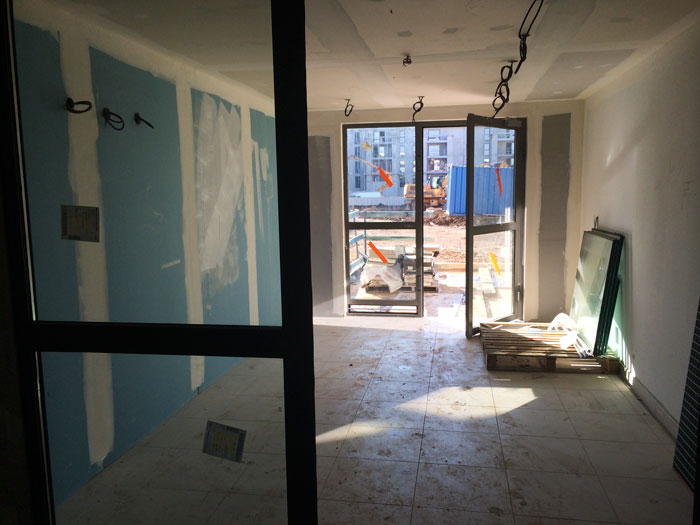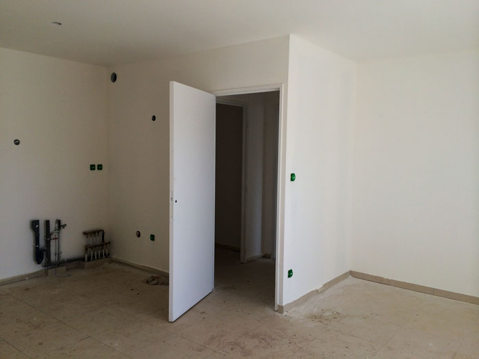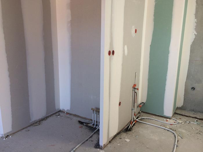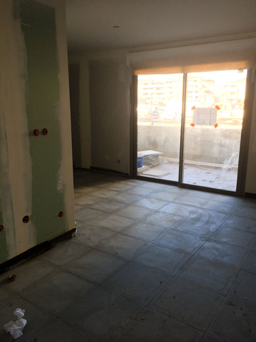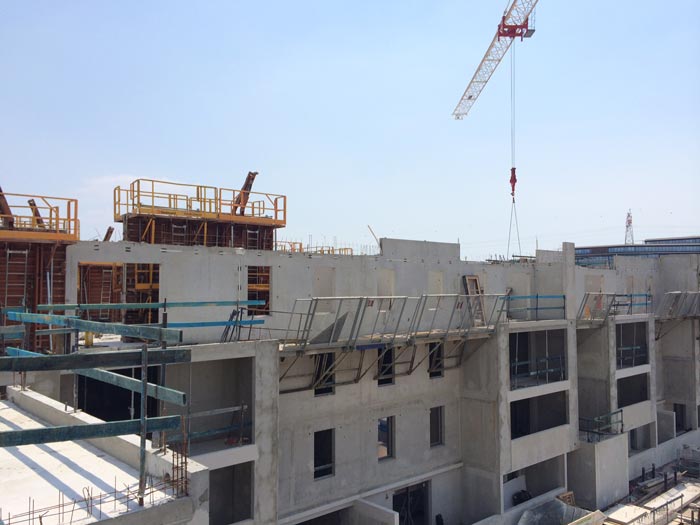 15 Juillet 2014 Bâtiment B : coulage des voiles du 4ème étage Bâtiment B : coulage des voiles du 4ème étage Bâtiment C : cloisons posées, incorporation des éléments de plomberie et électricité Bâtiment C : cloisons posées, incorporation des éléments de plomberie et électricité