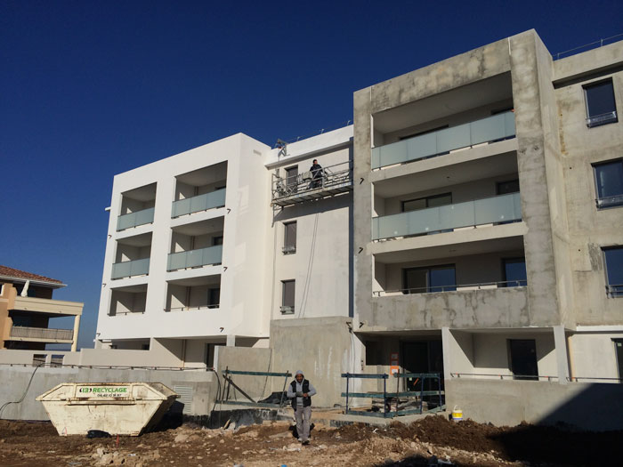 8 Juillet 2014 Bâtiment C : plancher haut du 3ème étage achevé, réalisation de l’étanchéité Bâtiment C : menuiseries aluminium et dalles du plot posées Bâtiment B : plancher haut du 3ème étage achevé Bâtiment A : coulage du plancher haut du 3ème étage